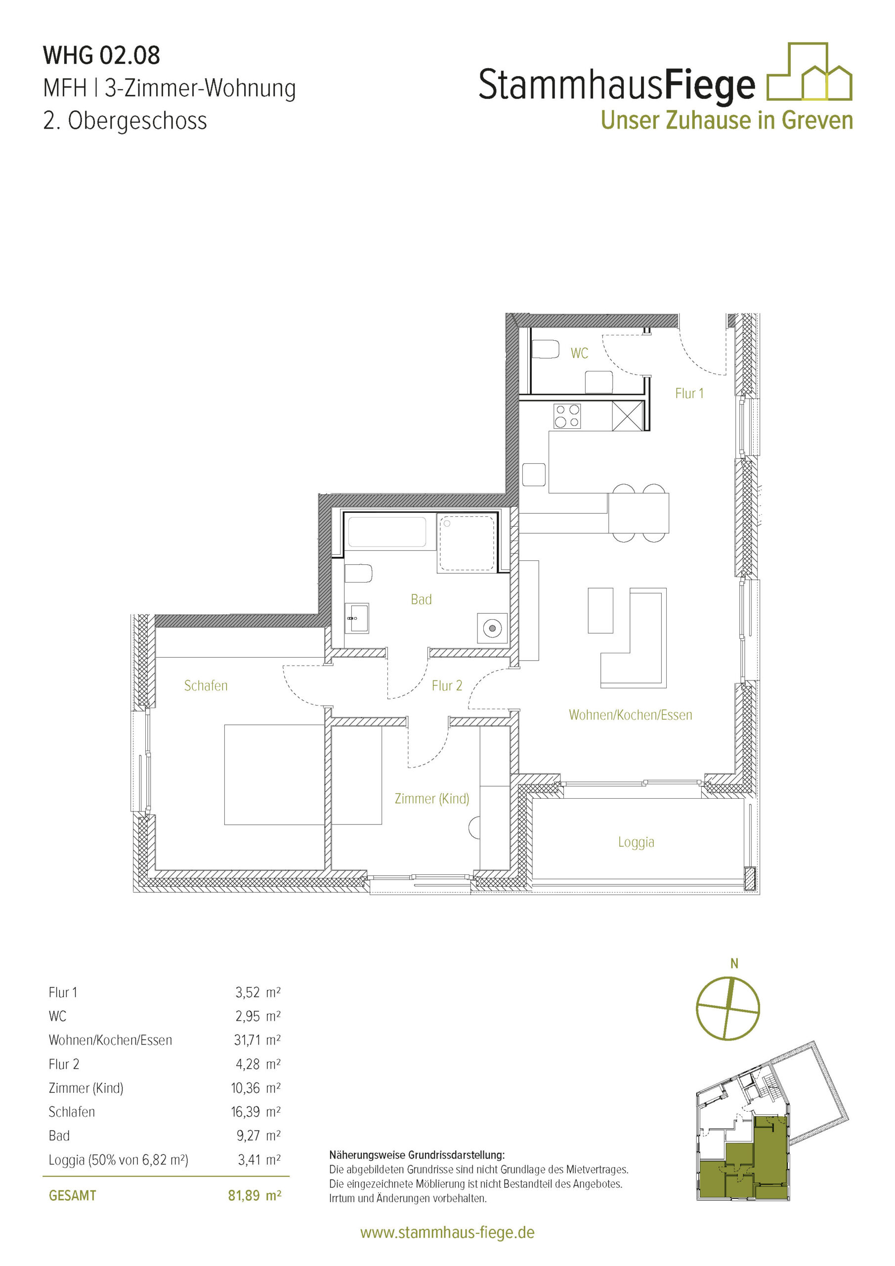 Direkt an der Bushaltestelle „Hansaviertel“ stehen ab März 2022 in der Stadt Greven „Rechts der Ems“ zur Vermietung 19 Wohneinheiten bereit. Die Anbindung ist hervorragend, sowohl die Nähe zur Innenstadt als auch die Anbindung an die B481, B291 und A1 erleichtern den Alltag. Vieles lässt sich zu Fuß oder mit dem Rad erledigen. Für Pkws steht jeder Wohneinheit 1 Stellplatz auf dem Grundstück und für die Fahrräder ein Schuppen zur Verfügung.